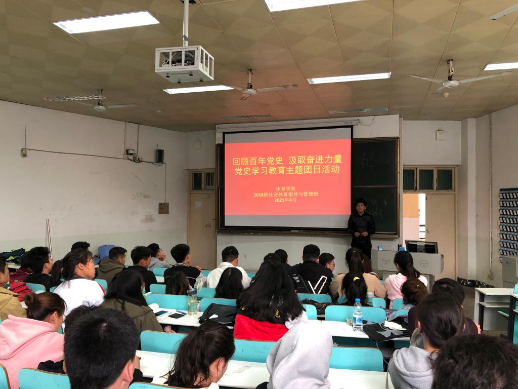 为庆祝中国共产党百年华诞,提高学生的社会责任感和使命感,使学生们更加深入地了解党一百年以来的历史,增强爱国护国意识,体育学院2018级全体学生于4月26日在教九楼402教室开展了以“回顾百年党史,汲取奋进力量”为主题的团日活动。本次活动由辅导员程俊辉主持,18级全体同学参加。
