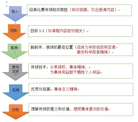 (一)传授知识方面,发挥理工学生为主的特点,对胸前传接球中的动力分析引用流体力学的伯努利定律进行解读,从物理学角度解读学习内容,激发学习兴趣,让“理工男”理解起来深入浅出,激发科学探索精神,实现知识迁移的学以致用。